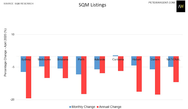 SQM Research showed that this has been reflected in tighter stock levels across the country as at April 2020, with all capital cities recording substantial year-on-year declines.