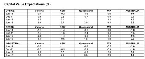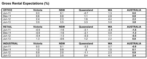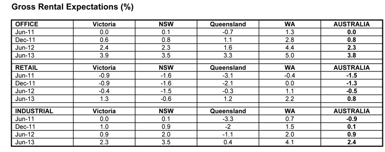 Office expectations have however been revised down from the March quarter survey when 2.8% capital growth was forecast by March 2012 and 4.3% forecast by March 2013.