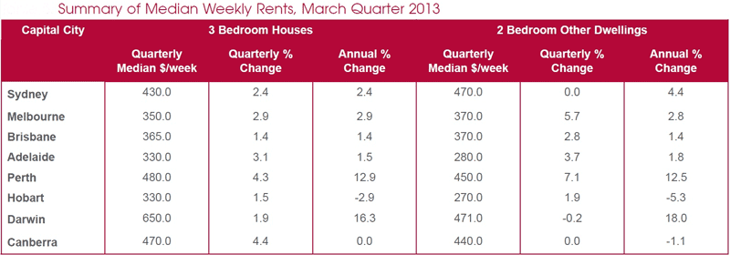 Sydney unit rents were unchanged at $470 per week with Darwin the only market to record a decline in unit rents over the quarter, albeit just 0.2%.