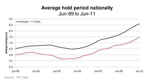 RP Data says the typical hold property period has jumped from 6.8 years to 8.6 years over the past decade.