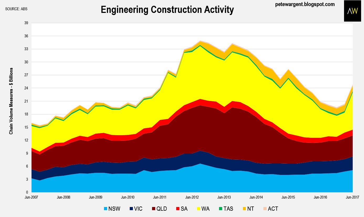 Another boon for Queensland is that took its capex downturn medicine earlier than Western Australia, so although it was painful, the drag has now ended, with roads and other infrastructure projects having kicked off.