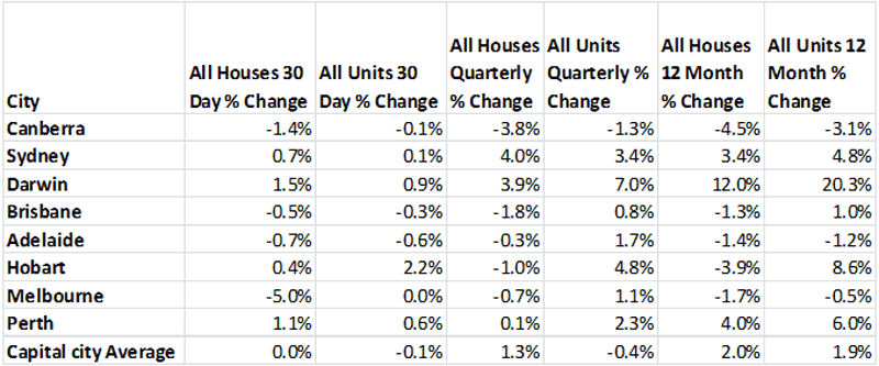“Melbourne is still recording some weakness and that goes with Canberra as well, which has most likely been affected by cuts in the Federal budget. Sydney and Darwin are leading the charge.