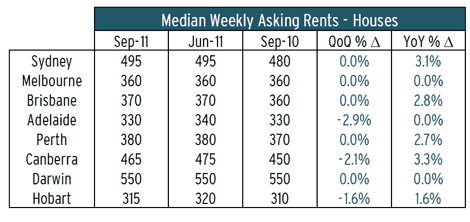During the September quarter median asking rents for houses fell nationally by 0.2% while asking unit rental prices picked up by 1.1% in the quarter.