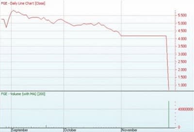 Forge Group (FGE) went to the wall almost overnight in 2013 after massive power station losses were unexpectedly revealed to the market, with Forge's Managing Director David Craig (not the singer) noting that the this was "extremely disappointing".