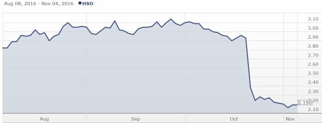 And in the healthcare sector, which has performed tremendously well in recent years, here's another favourite value stock Healthscope (HSO), which has also recently crashed.
