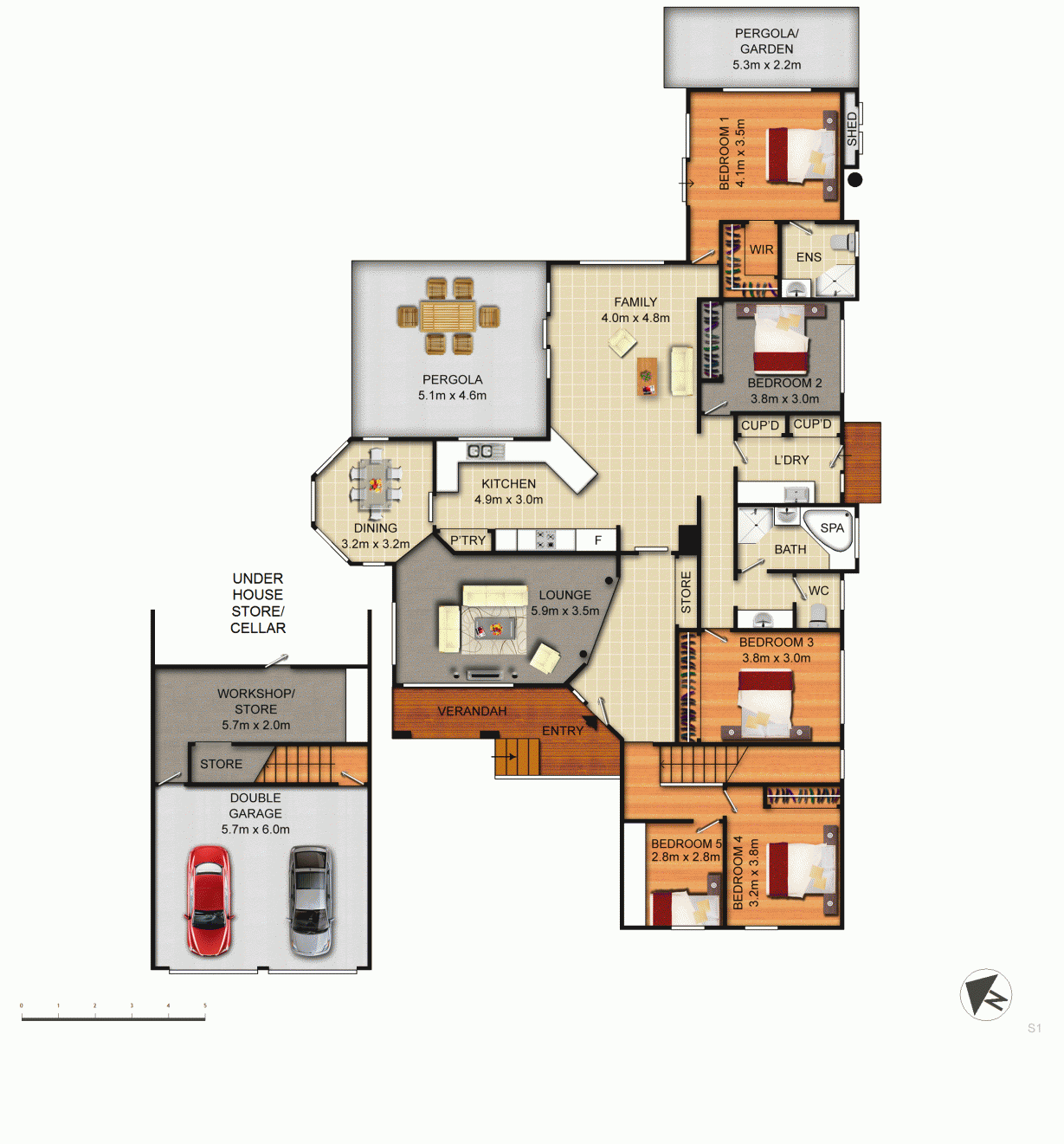 - Bedrooms: five
