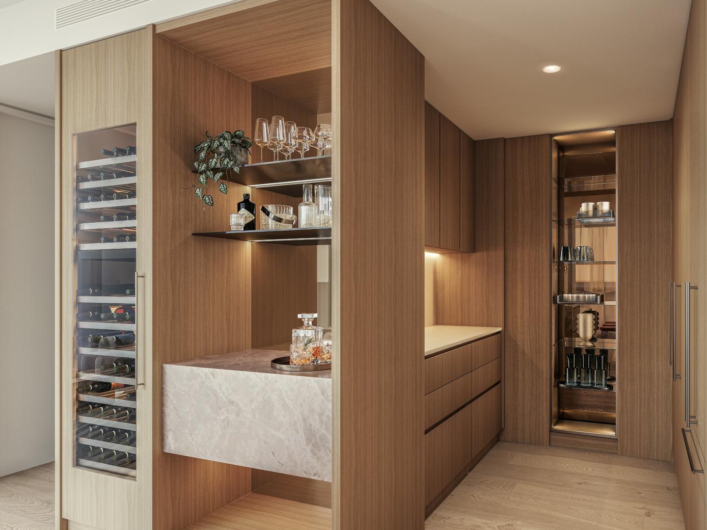 The Eliza Collection, spanning levels 44ā68, offers generous layouts with premium features such as a temperature-controlled wine cabinet, Gaggenau appliances, an impressive feature pendant lighting and a butlerās pantry. The upper levels have just 5 residences per floor, ensuring enhanced privacy.