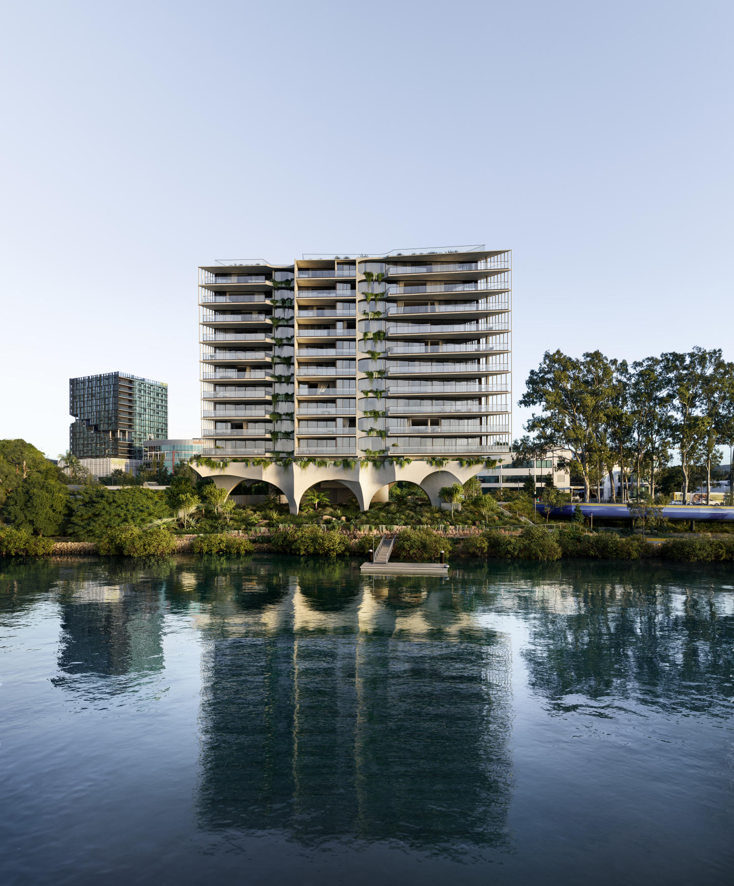 The organic curved exterior of ARC, designed by the award-winning Bureau^proberts, blends seamlessly with the riparian undercroft and creates an elegant presence that is rarely associated with residential buildings. The interiors at ARC have been carefully curated with the finest selections in appliances and fittings, reflecting a uniquely Brisbane aesthetic.