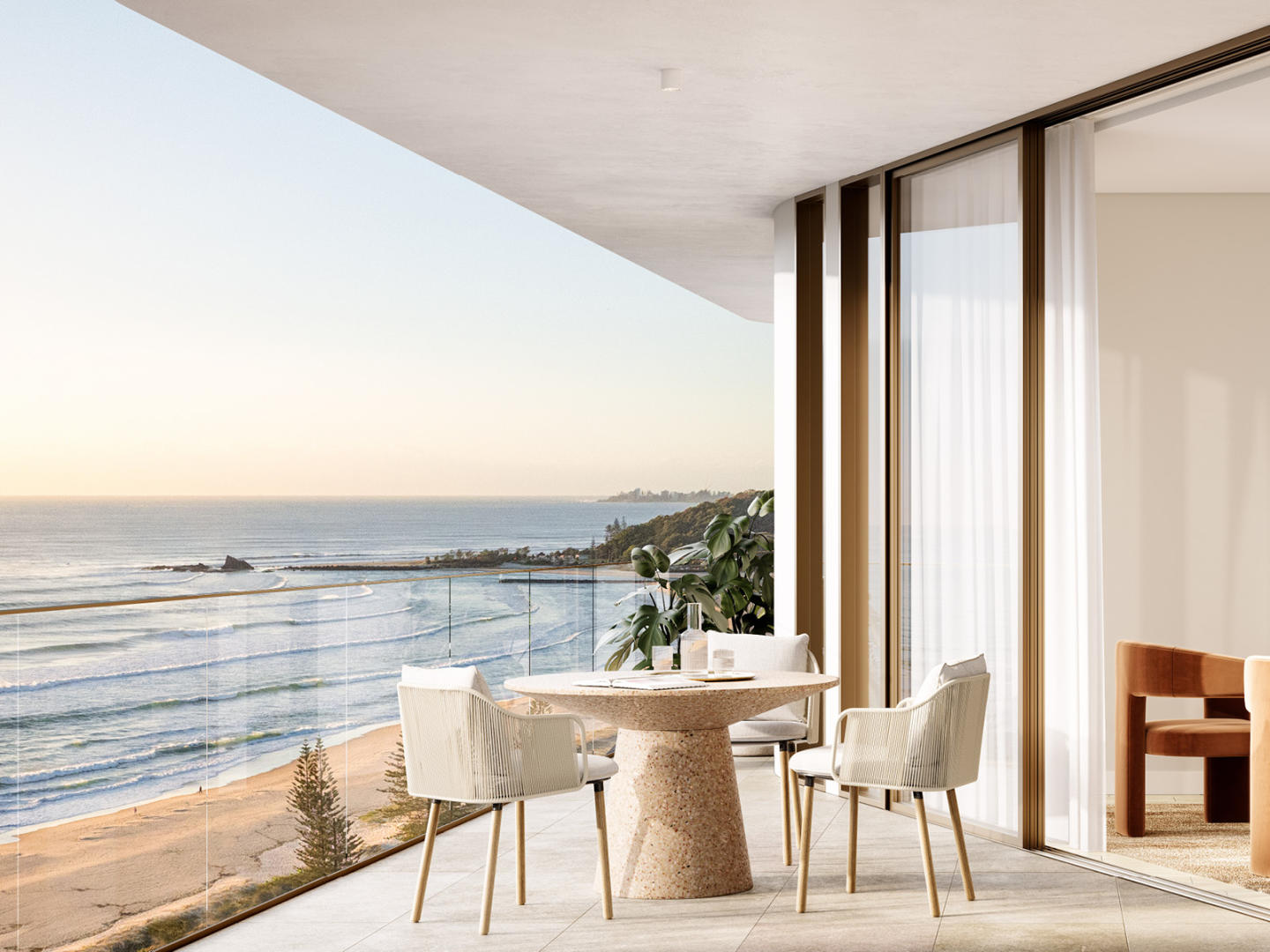 Corallo Palm Beach presents a landmark address in one of the Gold Coast’s most tightly held beachside suburbs. Rising 18 levels above the coastline, this boutique collection comprises 105 architecturally designed residences, offering a selection of one, two, and three-bedroom apartments, alongside four exclusive half-floor penthouses. Corallo’s elevated position on Palm Beach’s most prominent corner captures sweeping ocean vistas from Surfers Paradise to Currumbin, grounding each home in panoramic beauty and a strong connection to place.