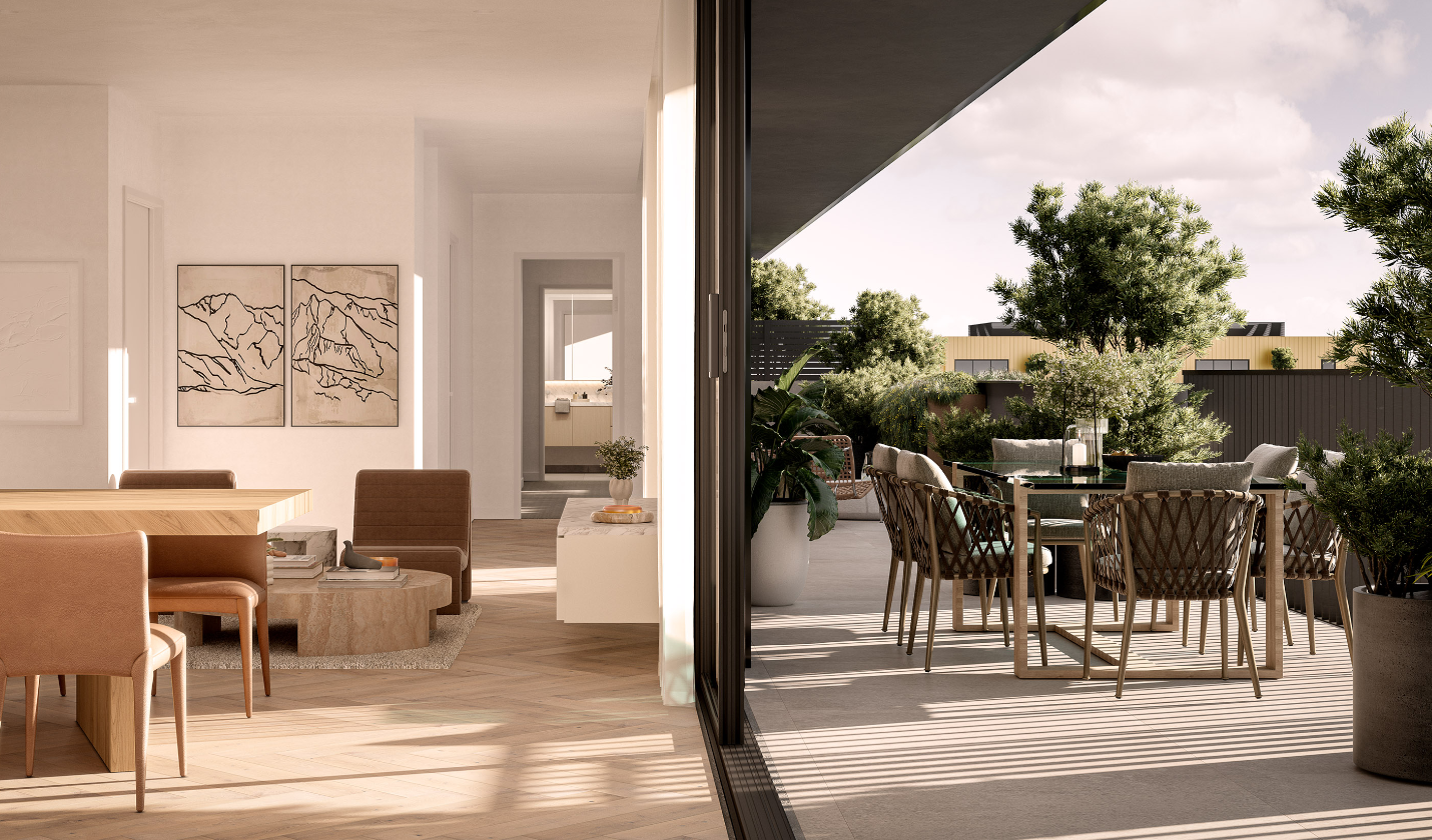 Now selling, The Mews Collection introduces 1, 2 and 3 bedroom residences across three boutique buildings. These residences are distinguished by Bosch appliances, natural textures and expansive floor-to-ceiling windows that frame leafy parkland views. Crafted with sustainability at the forefront, The Mews Collection reflects the vision of Highett Common as Victoria’s first Net Zero Targeted community.