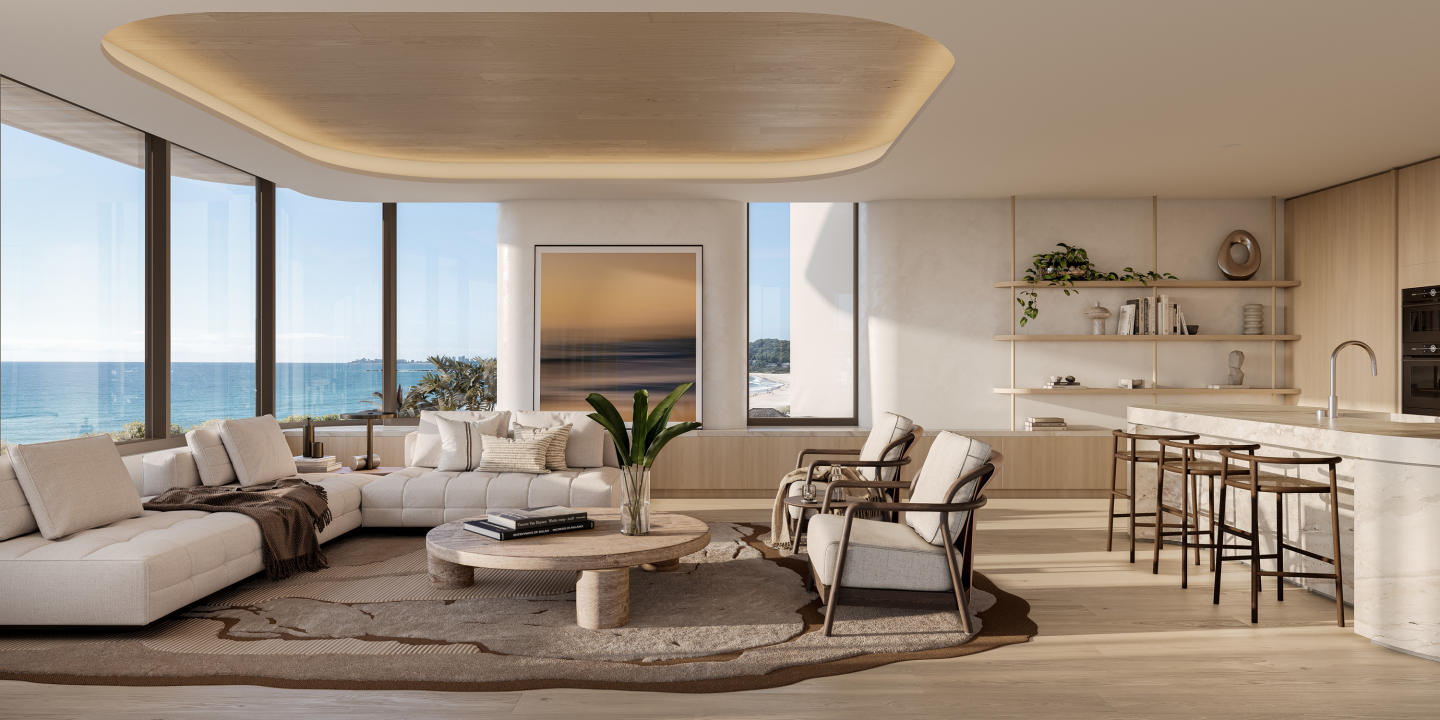 Interiors are defined by restraint and longevity, with natural materials, refined detailing and seamless indoor-outdoor connections supporting everyday rituals and long-term liveability. Each full-floor residence is accessed via private lift and opens to expansive living zones and generous balconies that extend the home towards the coastline.