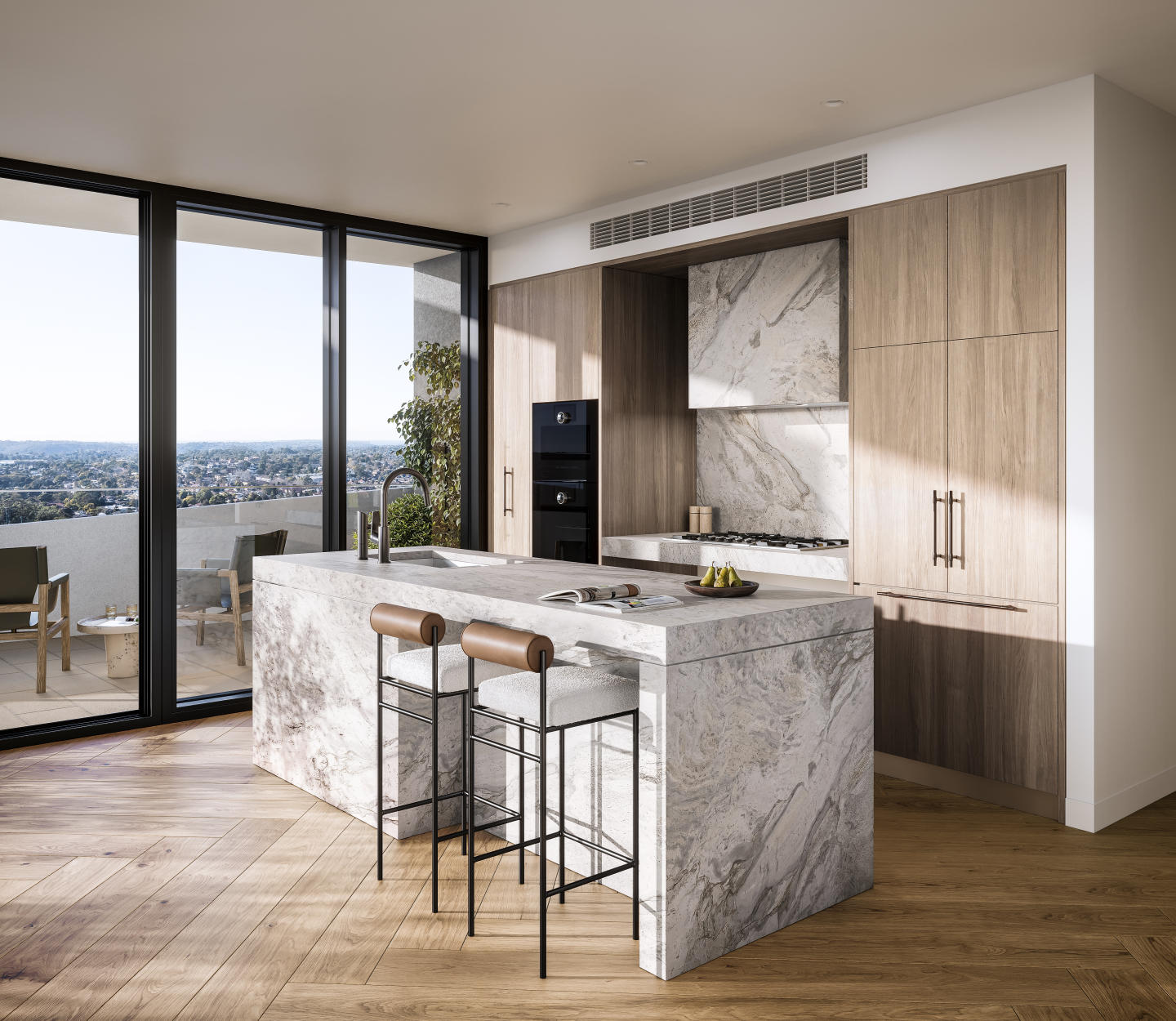 Expansive open-plan layouts extend seamlessly to large balconies, creating an exceptional indoor-outdoor experience. The kitchens are both functional and beautifully appointed â perfect for entertainers and culinary enthusiasts alike â while bathrooms have been designed as serene sanctuaries, showcasing meticulously selected fittings that promote comfort and relaxation.