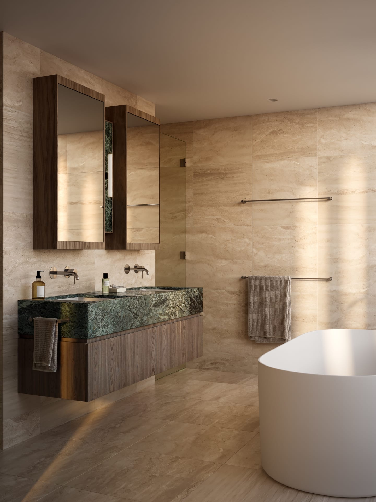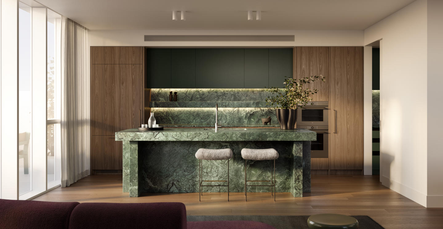 Designed by award-winning Australasian architects Hayball, The Regent’s commitment to both local character and residential luxury extends from the experience on street level and into the tactility of each home. Here, two interior options have been designed by Melbourne’s acclaimed Studio Tate, an interior architecture practice that are leading the luxury residential market.