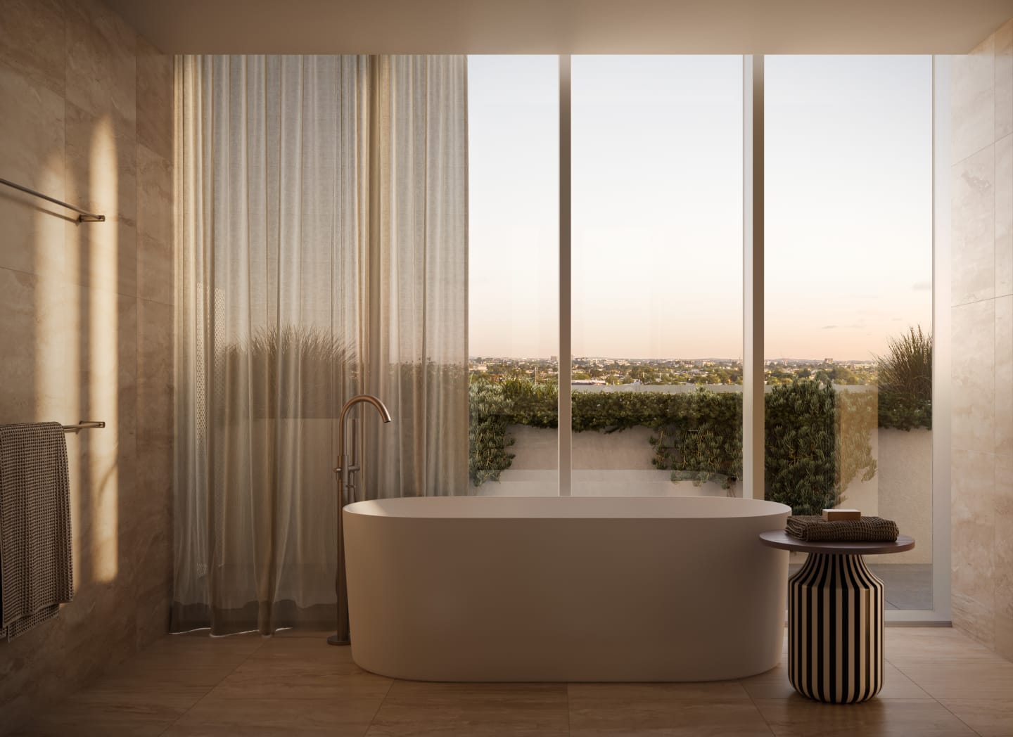 The Regent’s design creates a backdrop for a life well lived, and it places all conveniences within reach, starting with a coveted Fitzroy address. A dedicated concierge makes life simple, and access to a sprawling rooftop terrace is perfect for socialising, resting or basking in the summer sun. Access to a bookable overnight guest suite means that hosting friends and family is simple and without compromise. An in-building workshop provides space for DIY projects, while a basement dog wash means you can keep your furry friends looking and smelling their best.