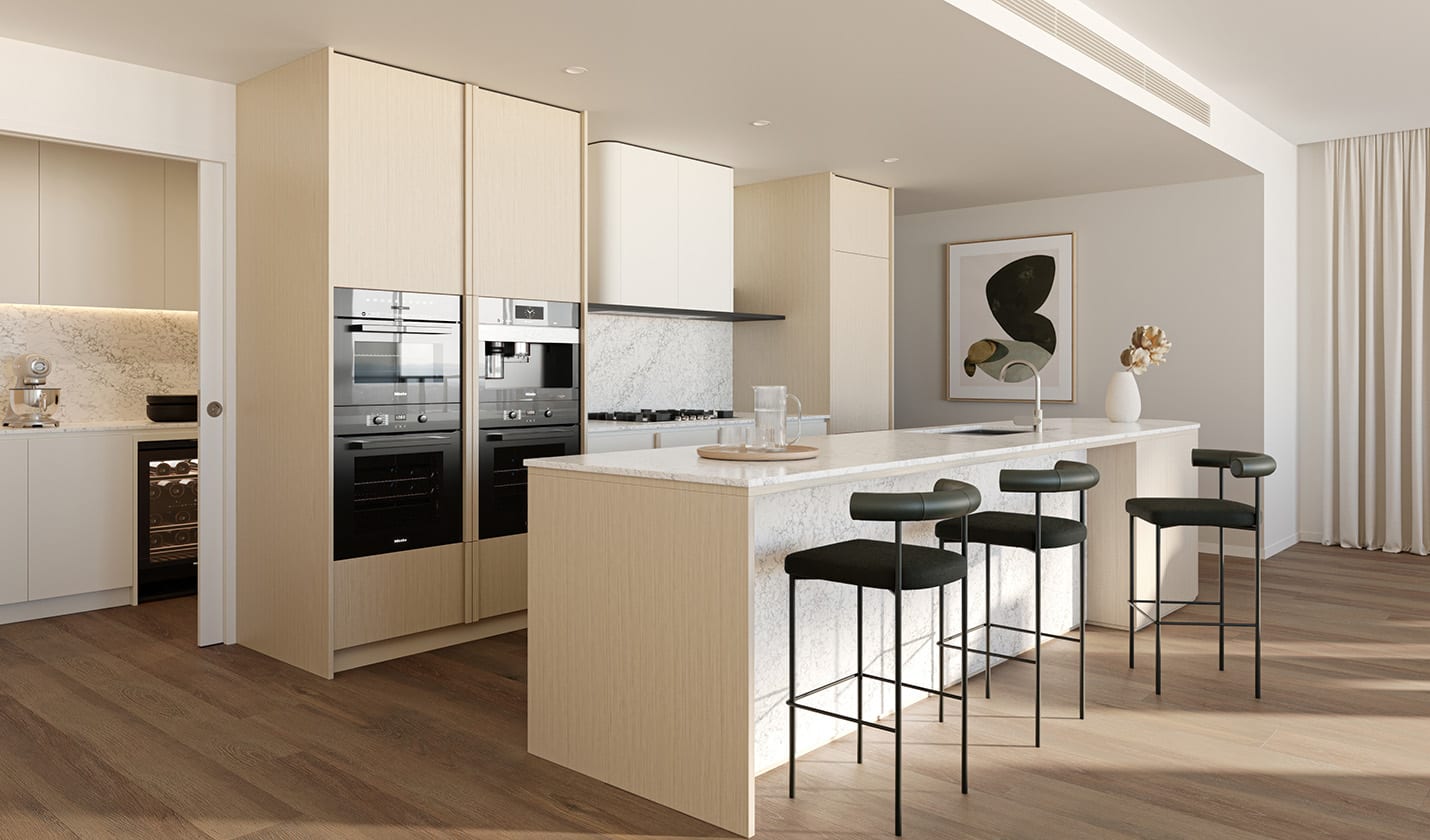 Open plan living, dining and kitchens with seamless transition into outdoor space.