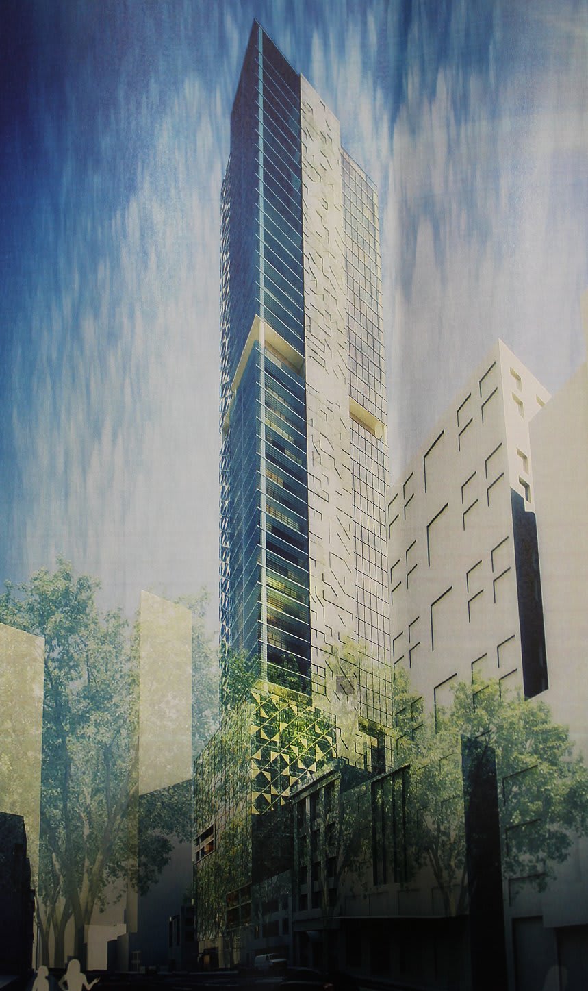 At street level dual entrances will be available off Queen Street and Little Lonsdale Street, with a new café to front Little Lonsdale in order to bring activity to the lesser used thoroughfare. While this development has been approved, it was not the first application that was submitted for the site; an earlier proposal submitted would have reached an even taller 220m. Key differences between the initial and approved plans include the height decrease to 205.4m, a decrease in the typical floor plate from 964sqm to 832sqm, increased setbacks from Queen Street, reduced setbacks to Little Lonsdale Street and an increase in podium height from five to ten levels. As yet there are no set plans for the tower to begin construction, it's likely that an anchor tenant will be required before Dale Rose Pty Ltd can approach financial institutions for construction funding.