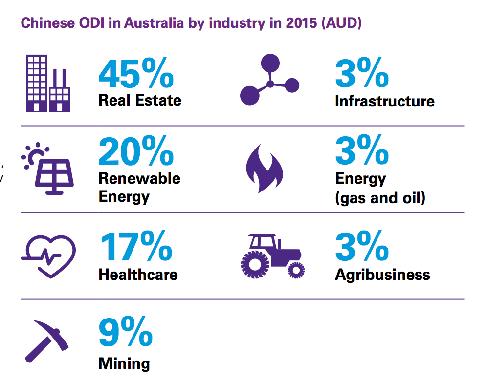 “Following two years of moderately declining Chinese investment, the resurgence of interest and the diversification by Chinese companies in 2015 is a strong endorsement of the attractiveness of Australia’s economy. Alongside continued interest in the NSW and Victorian commercial real estate sectors, there has been activity and major deals in renewables, agribusiness, and for the first time, healthcare,” said report co-author, Doug Ferguson, head of KPMG Australia’s Asia and International Markets.