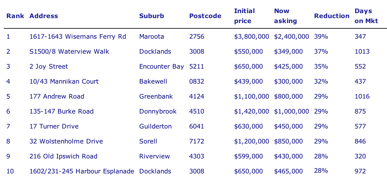 Taking up tenth position on the Most Discounted Properties Nationwide list from SQM Research is a two bedroom apartment in Harbour Esplanade, Docklands, which was first put on the market in July 2013.