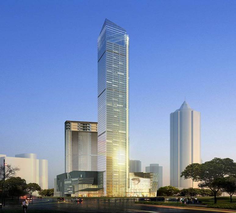 The two (East and West) Soochow International Plaza towers come in at 288 metres. The dual tower complex is perfectly symmetrical, with matching zig-zags on the façade of each tower. Dadongwu Group developed the project.