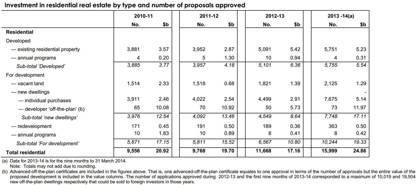 The latest 2013-14 data also indicate that a large proportion of the growth in residential real estate approvals has been from non-resident Chinese investors.