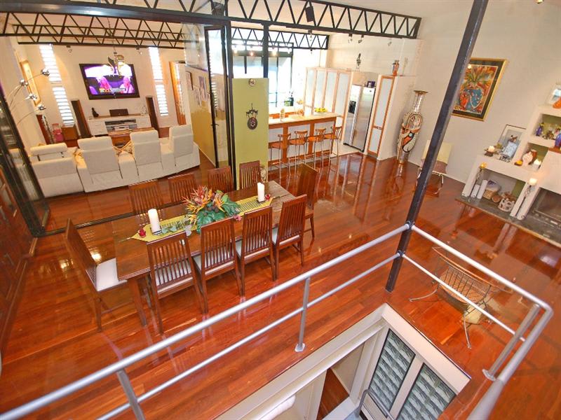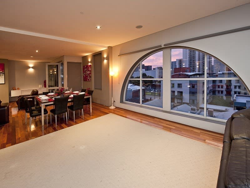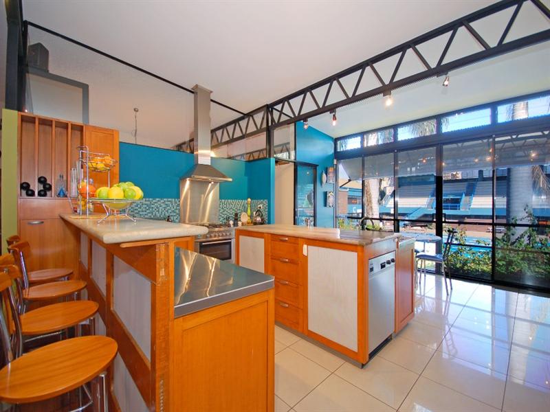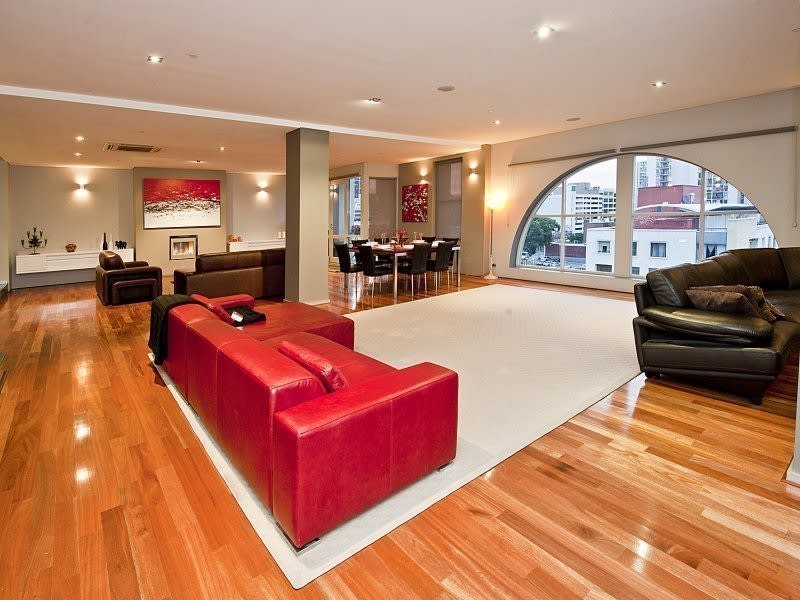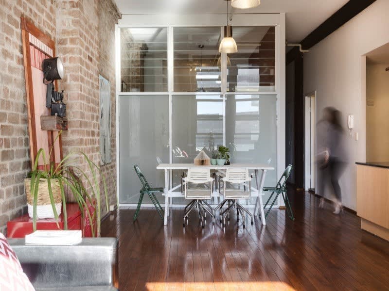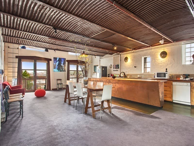 A “New York style” converted warehouse, this offering comes with three-bedroom plus study and three-bathrooms, and has timber floors and sky lights.