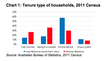 Rental apartments account for 58 percent of total apartments in the IBA area, considerably higher than the 29 percent share for all dwellings across Greater Brisbane. This highlights the preference of investors to purchase properties close to good transport links and major commercial, retail and entertainment centres, where tenant demand is likely to be greatest.