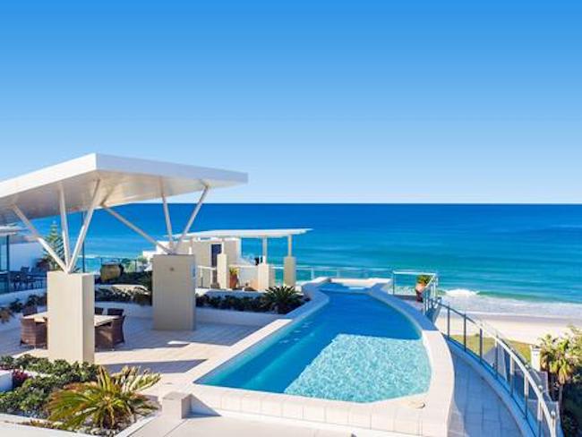 With sweeping views of the Coast, the two-level 758sq m four-bedroom skyhome at 701/252 has a rooftop terrace with a 15 metre lap pool and spa.