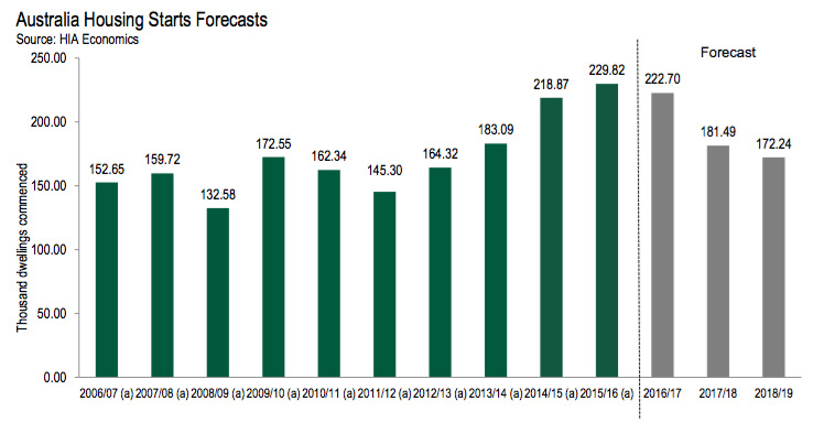 “Total new commencements are forecast to decline 3.1 percent, 18.5 per cent and 5.1 percent over the period 2016/17 – 2018/19, which would take commencements to a trough of 172,242, which is the average for the last ten years.