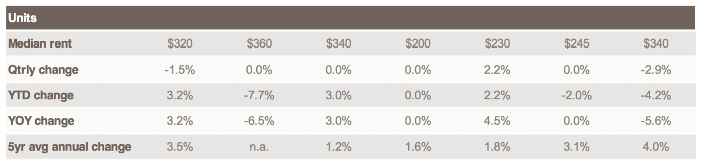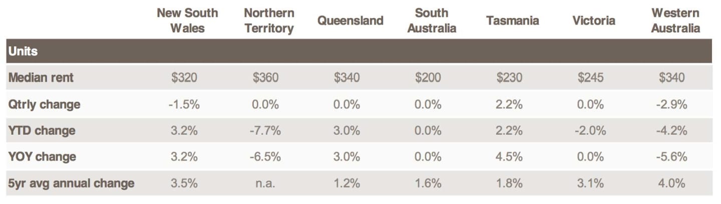 CoreLogic RP Data's Quarterly Regional Market Rental Review to September found unit rents on NSW's mid-north coast increased by 3.2% over the quarter to $320/week and rents in Victoria's Wimmera increased by 2.5% over the quarter to $205/week.