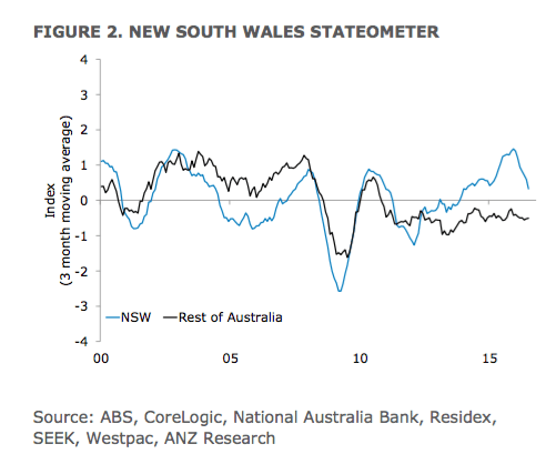 New South Wales continues to grow at an above-trend rate according to the ANZ’s Stateometer, but momentum has eased further and growth may soon be back at trend.