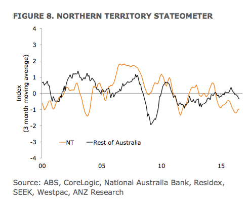 - After reaching a five-year low in April, the territory’s smoothed index has improved slightly. This suggests to us that growth in the Northern Territory may have passed a turning point.