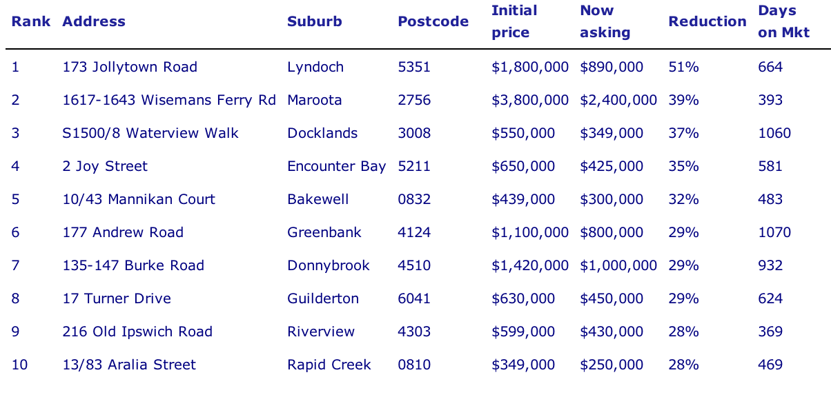 A Northern Territory apartment has popped in tenth place in SQM's nationwide top ten discounted properties as a new entry.