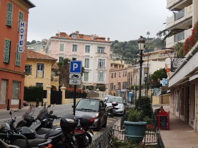 Set on the busy road midway between Monte Carlo and Nice, the four storey Royal Residence has around 20 occupant buzzers with Odetta Medich having the split-level patio balcony apartment. It appears to have valley views of the town, but nothing much of the Mediterranean sea in view.