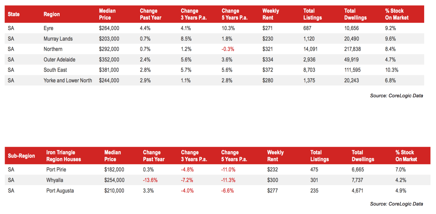 "The Eyre region, with Port Lincoln as its main town, experienced the largest increase in house prices, up 4.4 percent in the past year to $264,000."