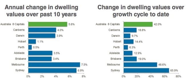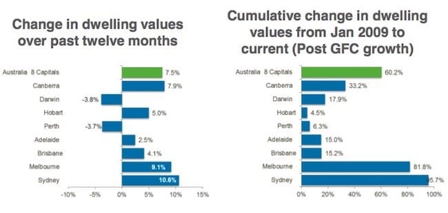 Sydney continued as the stand out based on annual capital gains, recording the largest year-on-year increase; dwelling values are now 10.6 percent higher over the past 12 months.