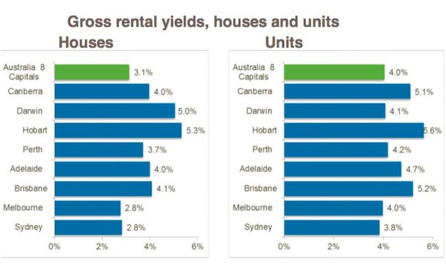 Taking into consideration holdings costs, expenses and vacancy, the net rental yield for houses is likely to be closer to 2 percent in these markets.