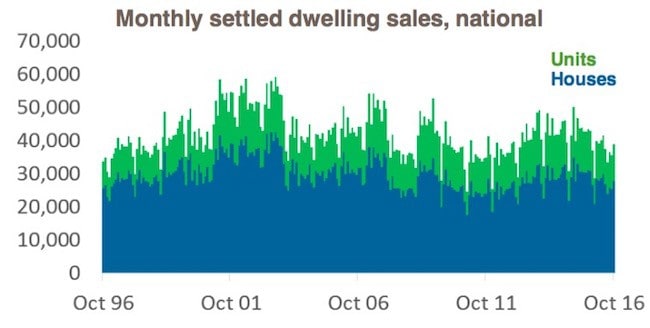 The CoreLogic turnover estimates have recently levelled after trending lower since April 2015, however settled dwelling sales over the three months ending October 31 remain 13.9 percent lower than the same three month period in 2015.