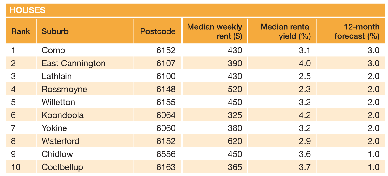Como takes the equal top spot as Perth's 2016/2017 hotspot for investing in houses with an expected increase of three percent over the next 12 months.